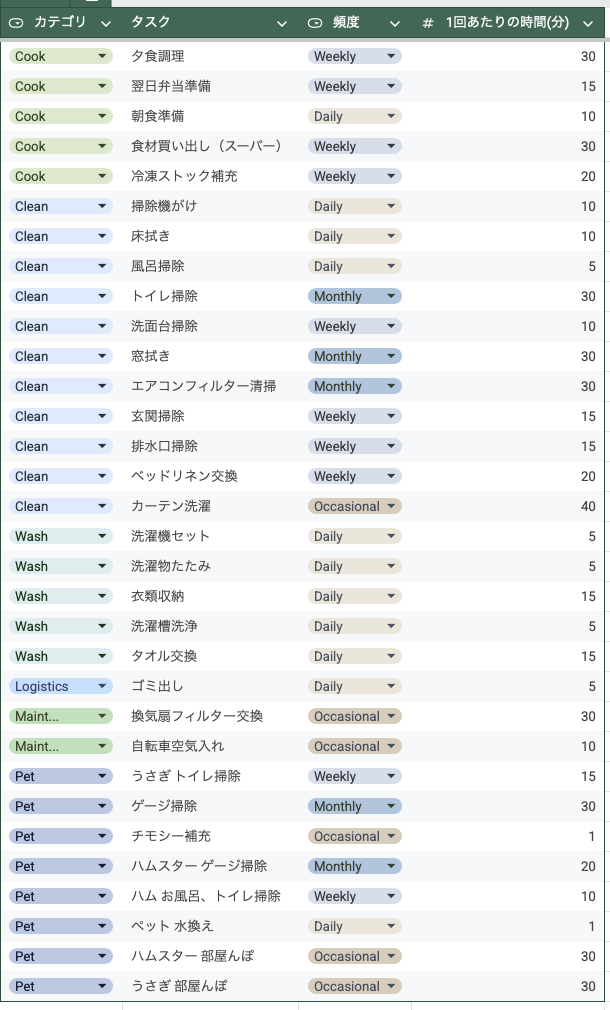 全ての家事を1分単位でリスト化します。